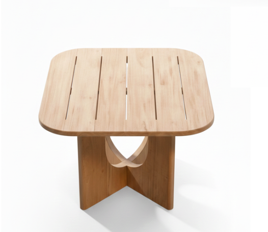 Handcrafted from premium solid Sheesham wood, the tabletop features a sophisticated slatted pattern with soft, rounded corners for a child-friendly and elegant finish. The wood is treated with a smooth natural oak polish that highlights the authentic grain and deep character of the timber. Built with a heavy-duty internal frame, this table ensures a noise-free and premium experience. Whether placed in a luxury sunroom, a minimalist lounge, or a Japandi-themed interior, this table serves as a bold functional focal point.