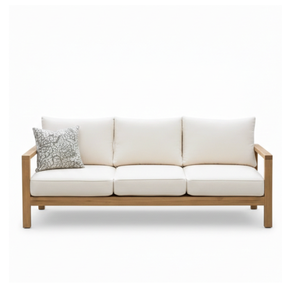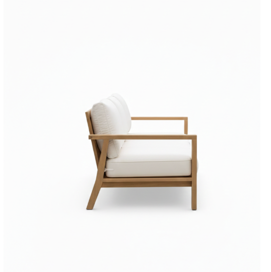 Cushioning: Premium high-density cushions in a neutral off-white finish for luxury comfort.