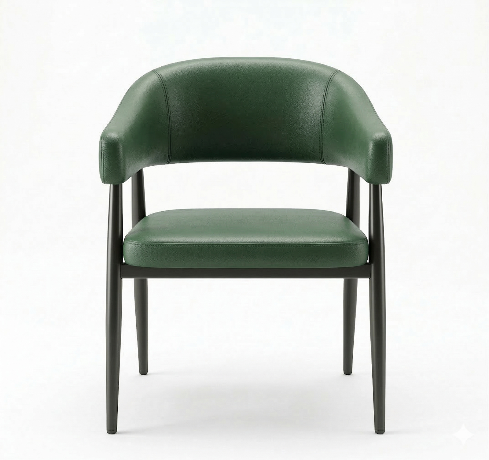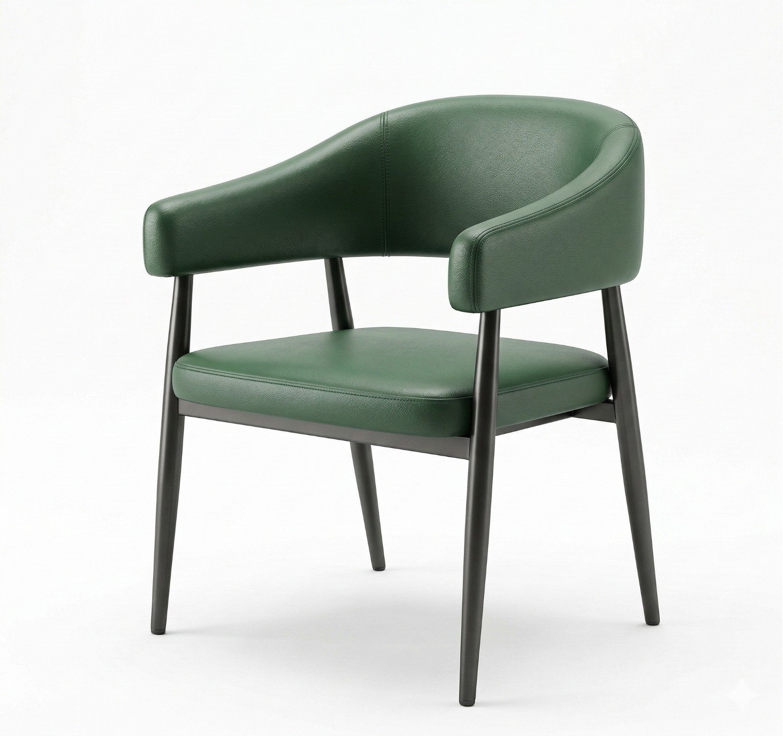 The Executive Dining Armchair is a sleek, industrial-inspired seating choice designed for a “clean” and high-end restaurant environment. This chair features a wrap-around backrest with integrated armrests that provide excellent ergonomic support. Upholstered in a premium, forest green faux-leather, it offers a professional look that is incredibly durable and easy to wipe down in busy dining spaces.