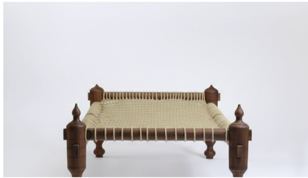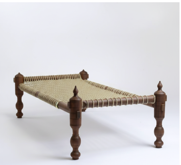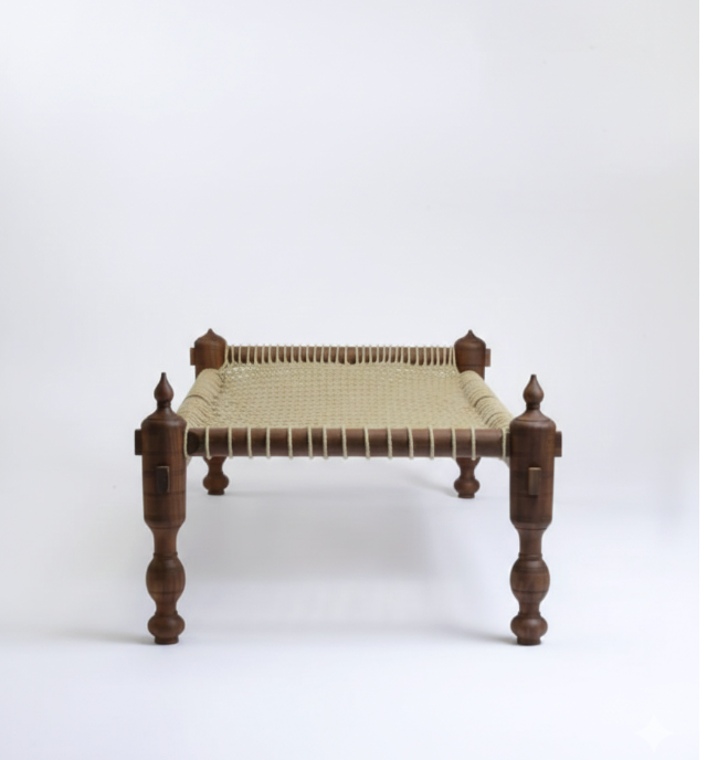 Design: Authentic Indian Charpai silhouette with hand-turned pillars and finials.