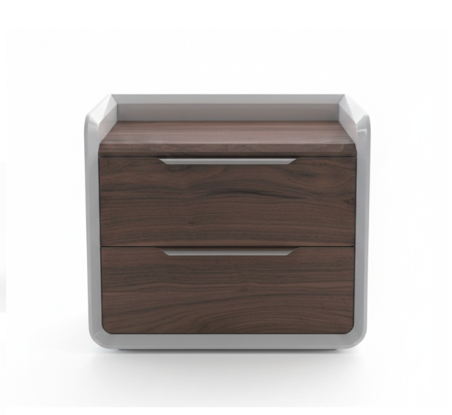 Modern Curve Bedside Table is a sculptural masterpiece of contemporary furniture design. This unit features a unique “wrap-around” outer frame in a crisp white finish, with soft, rounded corners that create a sleek and safe silhouette. The standout feature is the rich, solid Sheesham wood interior and drawer fronts, which provide a beautiful organic contrast to the minimalist outer shell.