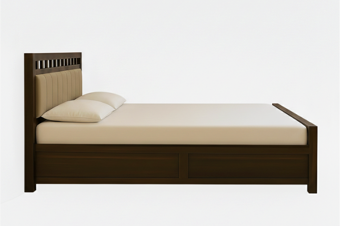 Handcrafted from premium solid Sheesham wood, the bed is finished in a deep espresso walnut polish that highlights the wood’s rich, dark tones and authentic grain. The heavy-duty box frame construction ensures maximum stability and offers a grounded, powerful presence in the bedroom. With its clean lines and high-quality finish, this bed is an ideal choice for transitional, classic, or modern urban master suites.