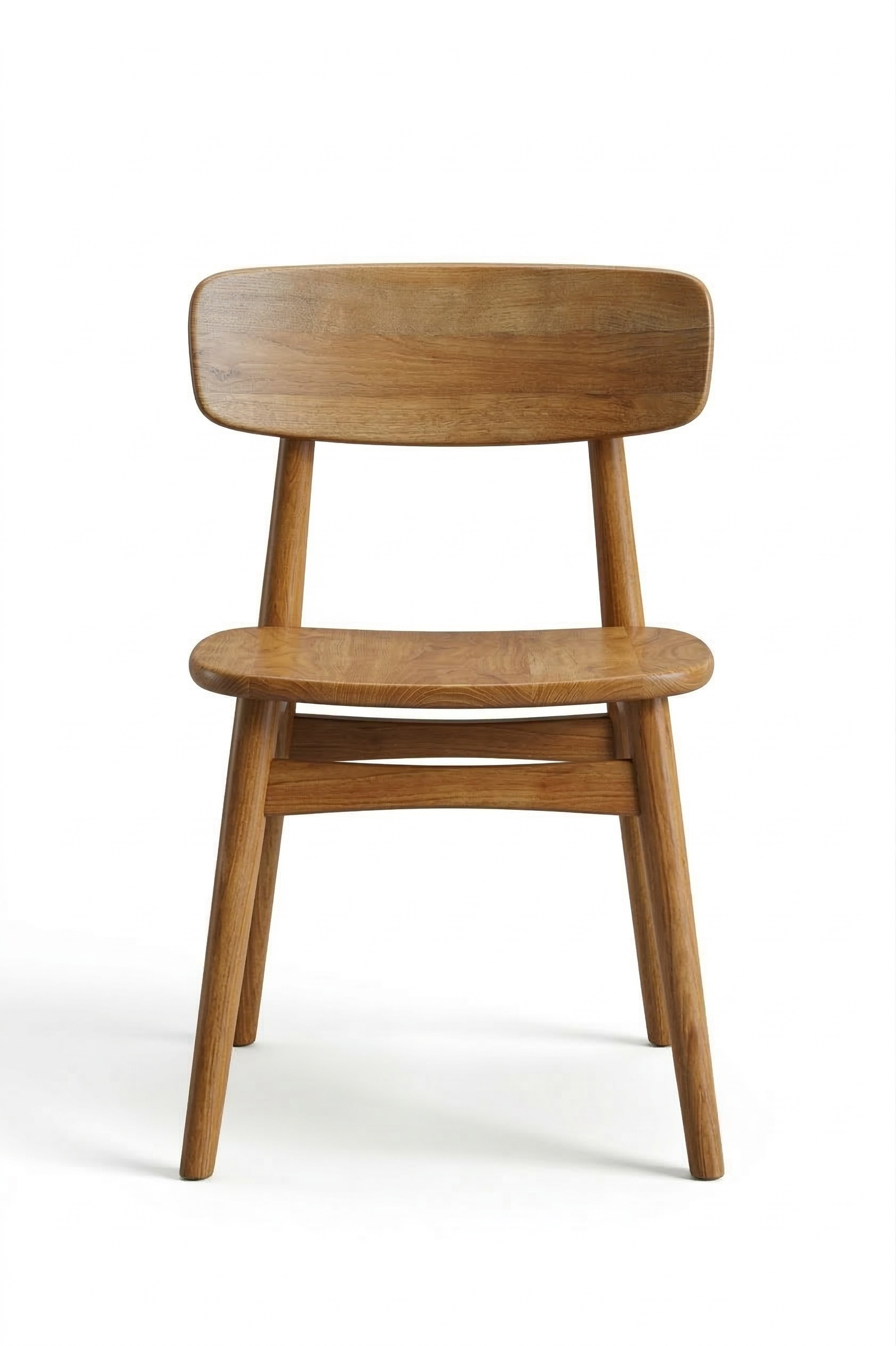 The chair features a sturdy open-frame design with tapered, splayed legs that ensure maximum stability for high-traffic commercial use. Every surface is hand-sanded and finished in a warm, natural honey polish that highlights the authentic wood grain. Its durable construction and easy-to-clean wooden surface make it a practical yet stylish choice for busy dining environments looking for a grounded, organic feel.