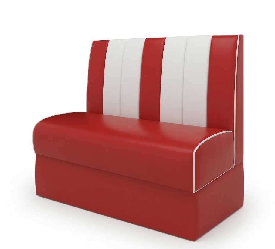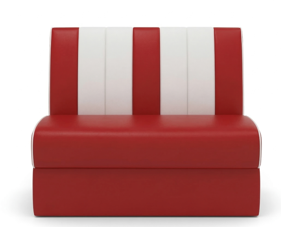 Design: Iconic retro booth silhouette with a bold red-and-white striped backrest.