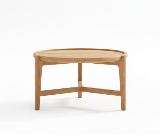 Scandi Tray Coffee Table is a masterclass in functional minimalism and organic design. This circular coffee table features a signature “tray-style” top with a raised protective rim, blending practical utility with a sleek aesthetic. Its unique tripod-inspired base, featuring tapered legs connected by a Y-shaped stretcher, provides exceptional stability while maintaining an airy, light-weight appearance.