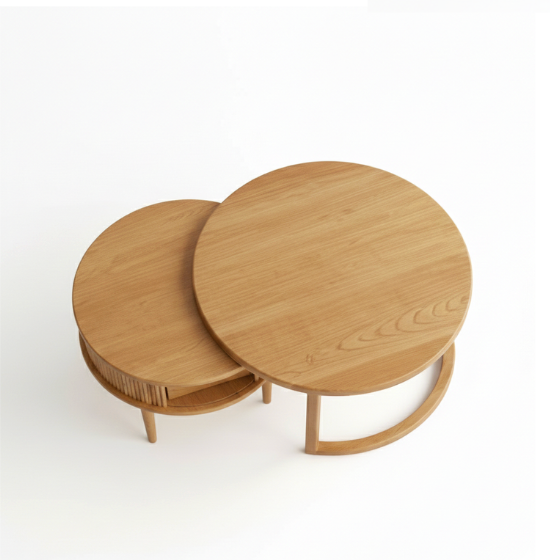 The Twin Coffee Table is a smart, space-saving solution designed for the modern home. This two-piece set features a larger, minimalist circular table that elegantly nests over a smaller, highly functional companion. Crafted from high-quality sheesham wood, the set showcases a beautiful natural grain that brings a warm and grounded feel to your living space.