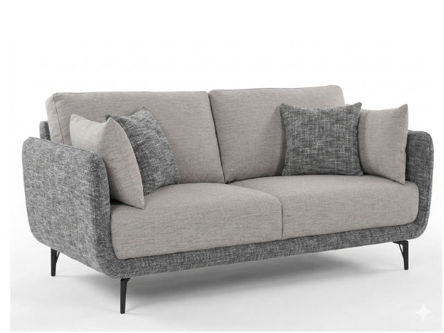 Urban Dual-Tone Loveseat is a masterpiece of modern comfort, designed for the stylish urban home. This 2-seater sofa features a sophisticated dual-fabric design: a light grey linen-textured seat and back cushions paired with a dark charcoal grey textured outer frame. The soft, rounded armrests flow into a continuous “cradle” silhouette, providing a snug and supportive seating experience.