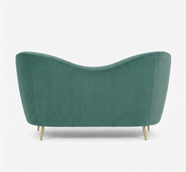 Velvet S-Curve Loveseat is a sculptural masterpiece that brings high-fashion glamour to your living space. This 2-seater sofa is defined by its unique asymmetrical “S-shaped” backrest, which flows seamlessly from a high wing into a soft low curve. Wrapped in a luxurious seafoam green velvet fabric, it offers a shimmering texture and a plush seating experience that is both supportive and stylish.