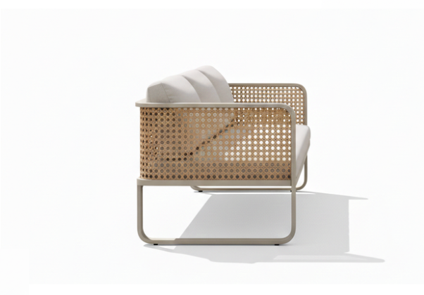 Design: Signature L-sectional silhouette with integrated square-weave cane side panels.