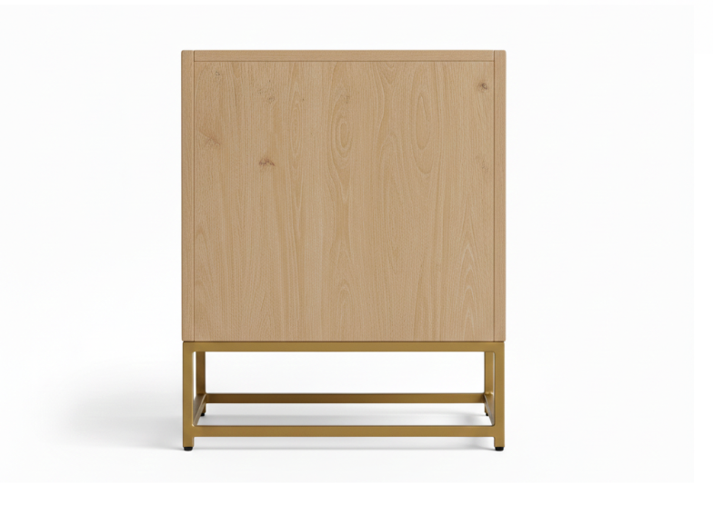 Finish: Light natural wood polish with a premium matte gold metal coating.
